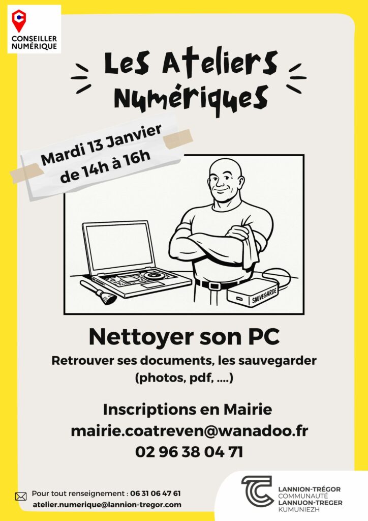 Prochain atelier numérique, le mardi 13 janvier de 14h à 16h sur le thème « Nettoyer son PC » : Comment retrouver ses documents (photos, pdf, …), les organiser, les sauvegarder sur un support ou en ligne
